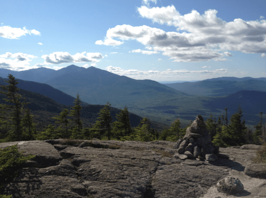 I thought the view was beautiful!! Is the Highland Center a center for ONE mountain? Or does it include ALL mountains? If one, which mountain did you climb? How did the little pile of rocks get there? Is it man-made? If so, did you add a rock to it?