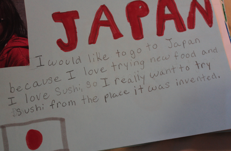 I have a busy weekend ahead. In addition to social activities, school work, and a balloon twisting job, I also need to set aside time to work on my Global Education Resource Guide. As part of my TGC fellowship, I am developing resources for other teachers to help students become more “globally competent.” I’ve always believed that the first step to being a good global citizen is curiosity about the world around us. Young people today know that they are globally connected — through the food they eat, the games they play, the places their families have lived, and more. You can see it in their recent classwork shown below. I asked students to answer this question: If you could go anywhere in the world, where would you go? Here’s a selection of their responses. As you can see, students are thrilled to connect globally… and now I’m just trying to figure out how to take them one step closer.