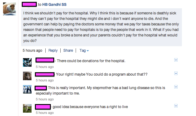 By posting multiple times on Edmodo, students will be able to learn as they go and get support along the way. One of the most important supports will be comments from their peers. There’s no way that one or two teachers can keep up with the pace of everything that is happening in the classroom in order to give steady feedback. When students are responding to their classmates’ posts, they become teachers as well. In addition, each posting day will be followed by teacher-led discussions in which I can provide suggestions that will assist with future steps. (How this is revised: As I mentioned, the last time we did this assignment, we grouped everything together into one writing piece. In addition, each student wrote about a different issue. Because they were all studying different things, I wasn’t able to provide that much support to help them dig deeply into the topics. As a result, many students found the assignment very challenging. A few students did complete the extra credit to try to implement their ideas, but most ideas lost steam before the implementation phase.)
