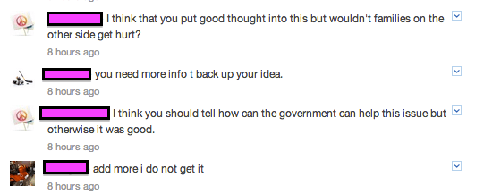 It seems like this project will really help students take their dialogue online (and I’m sure will spark lots of conversation in person, too). It’s very exciting to see students giving one another authentic feedback before you’ve seen the post.