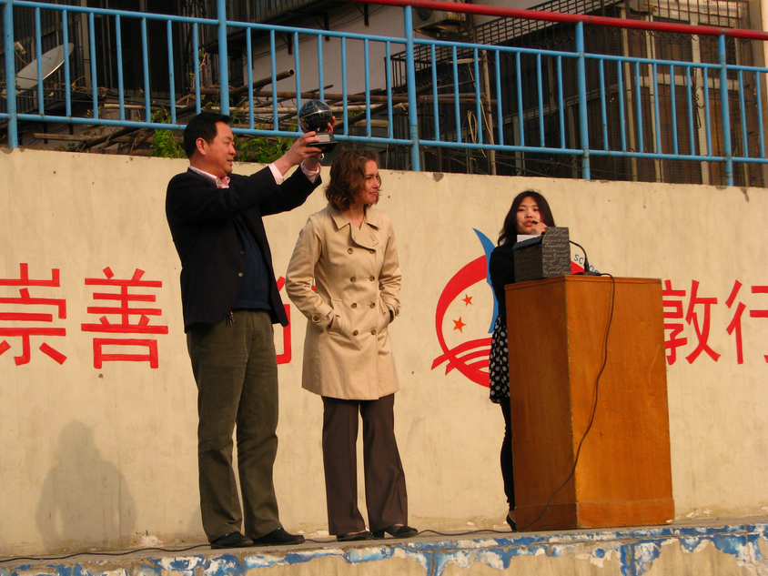 A challenge is resources; currently 32 of their 150 teachers are “temporary” or unlicensed teachers, because the school could not afford to pay the salaries to have all of their teachers licenses. They also have a difficult time equipping their school with adequate materials, such as technology, books, etc. When asked what sets their school apart, they shared that they have a dedicated staff that puts students first and they value a family-like culture at the school. A school resource officer is at the gate to the school and assists the Vice Principal in discipline matters, especially when students are involved in a fight. I laughed out loud when the Chinese teachers asked if American teachers had to deal with “puppy love” in the classroom. They also shared that the Principal has amassed quite a collection of cell phones from teachers that have been texting during class. We agreed that teenagers are teenagers everywhere.