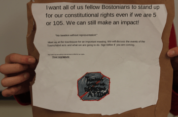 I want all of us fellow Bostonians to stand up for our Constitutional rights even if we are 5 or 105. We can still make an impact!